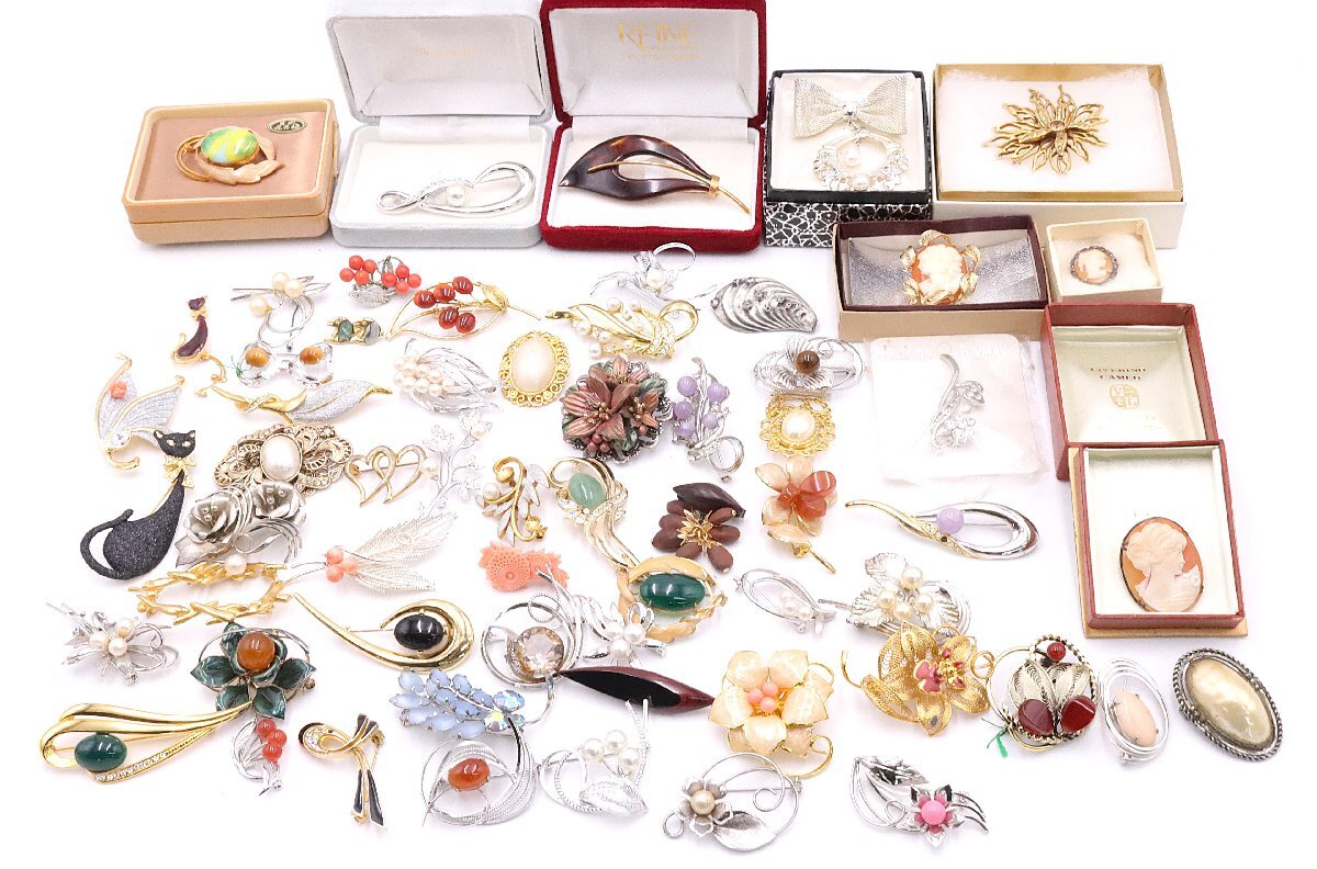 RESULTSブローチ 大量まとめ ゴールドカラー シルバーカラー カラーストーン 九谷焼 カメオ レディース