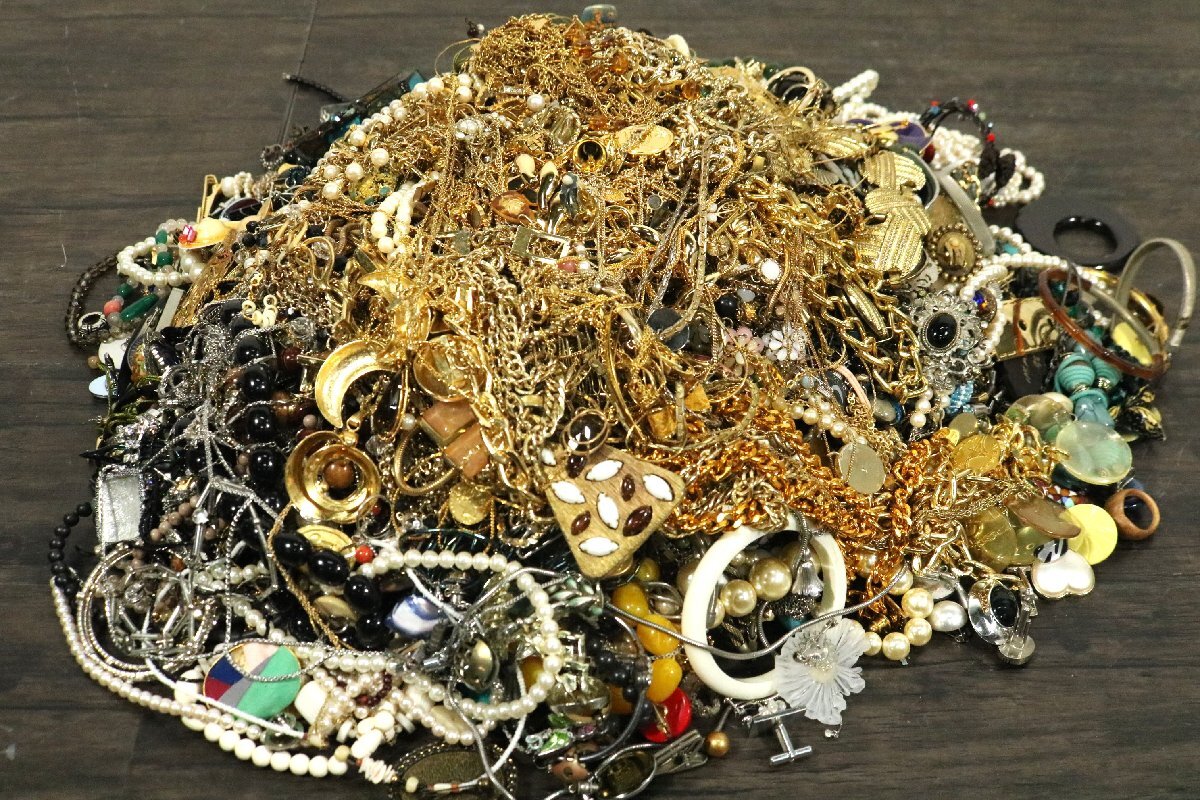 ゴールドやシルバーの様々なアクセサリーが含まれており、K18の刻印があるものも含まれています。大量まとめ品のため細かな検品は行っておりませんが、多種多様なジュエリーが揃っています。