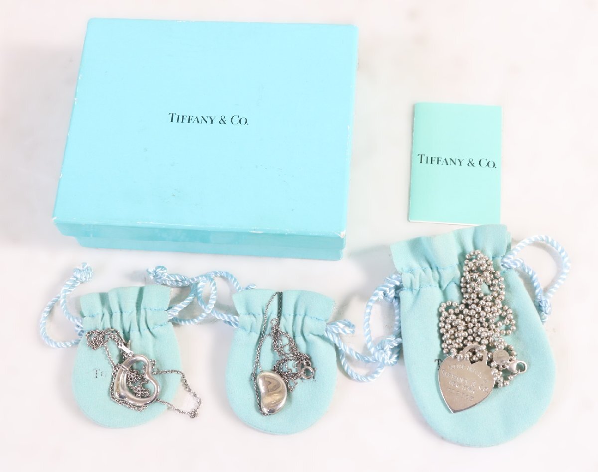 ハートやビーンなどのモチーフが付いたティファニーのネックレス3点です。シルバー925製で、ティファニーらしいデザインのアクセサリーとなっています。使用に伴う傷や汚れはございますが、ブランドジュエリーとして価値のあるお品物です。