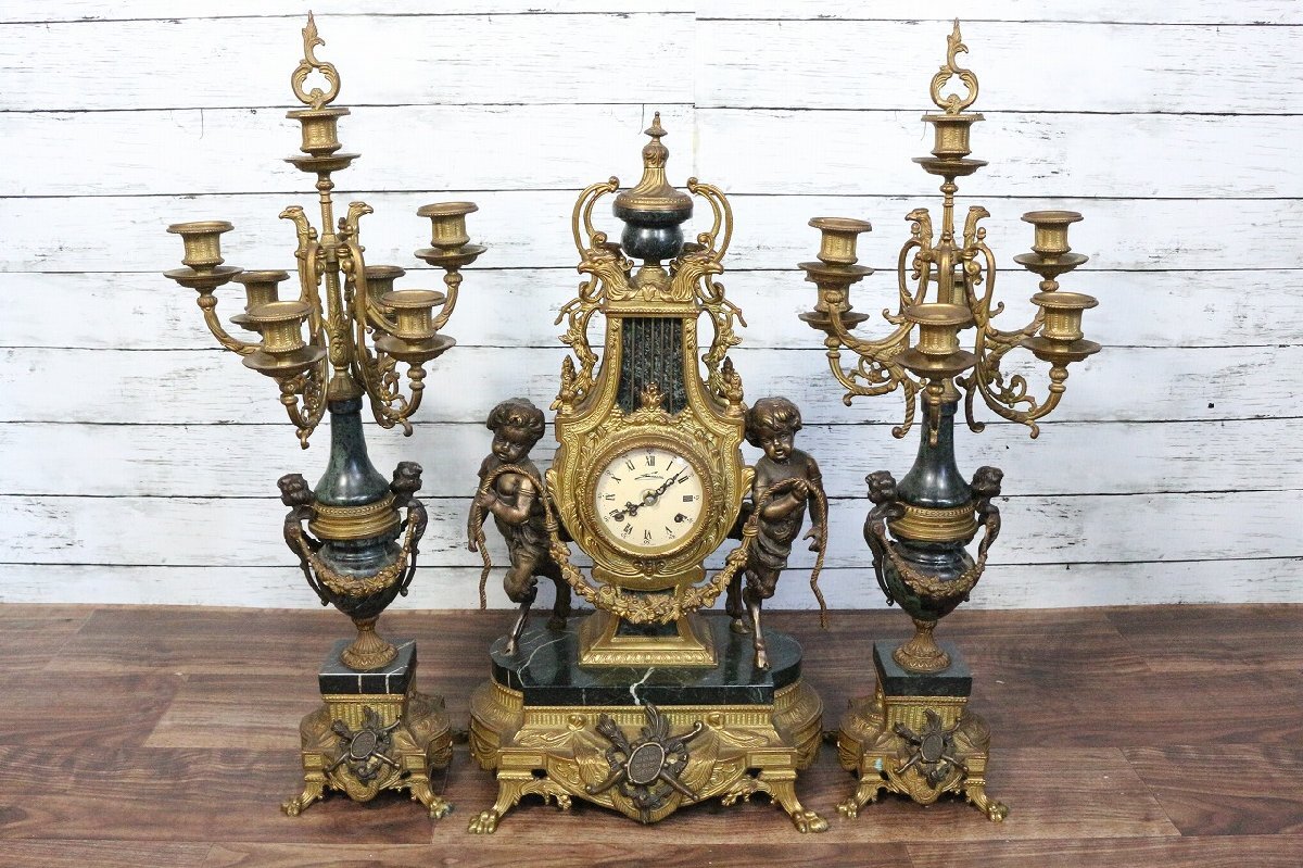 RESULTSLancini社 イタリア製 マントルクロック 置時計 琺瑯文字盤 天使装飾 手巻き式 燭台付