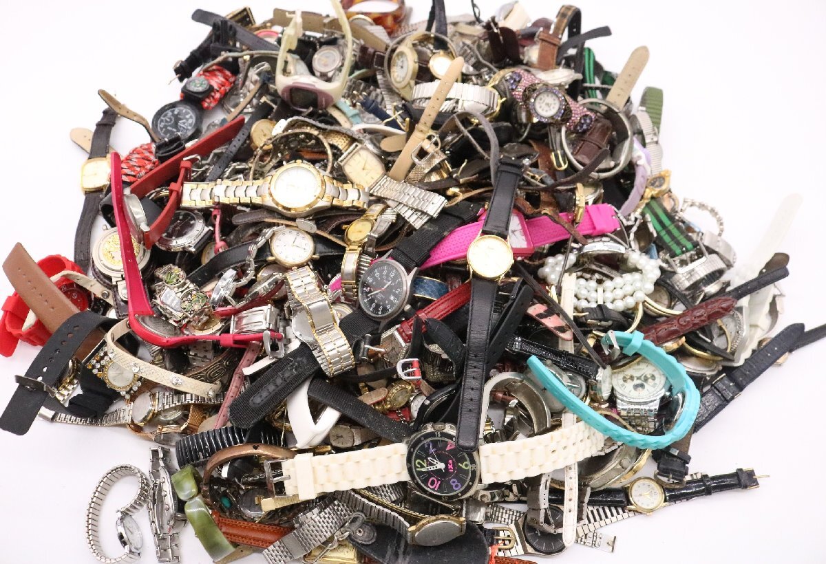 SEIKOやCASIO、CITIZENなど日本の有名時計メーカーを中心とした腕時計が多数含まれており、クォーツやデジタルなど様々なタイプが揃った状態でした。まとめ品のため動作未確認でしたが、パーツ取りや修理用としても需要の高い商品群です。