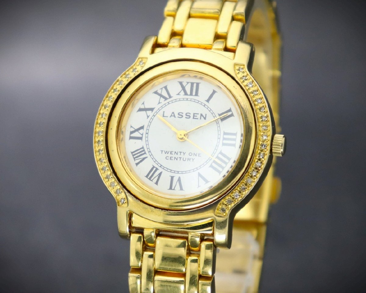 RESULTSラッセン LASSEN 1/10 QZ GOLD COIN WATCH TWENTY ONE CENTURY ラウンド 白文字盤 コマ付 稼働品