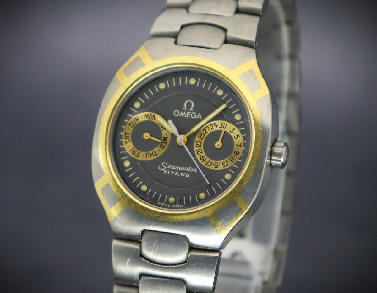 RESULTSOMEGA オメガ Seamaster シーマスター ポラリス チタン製 YG デイデイト クォーツ 電池交換済 稼働品