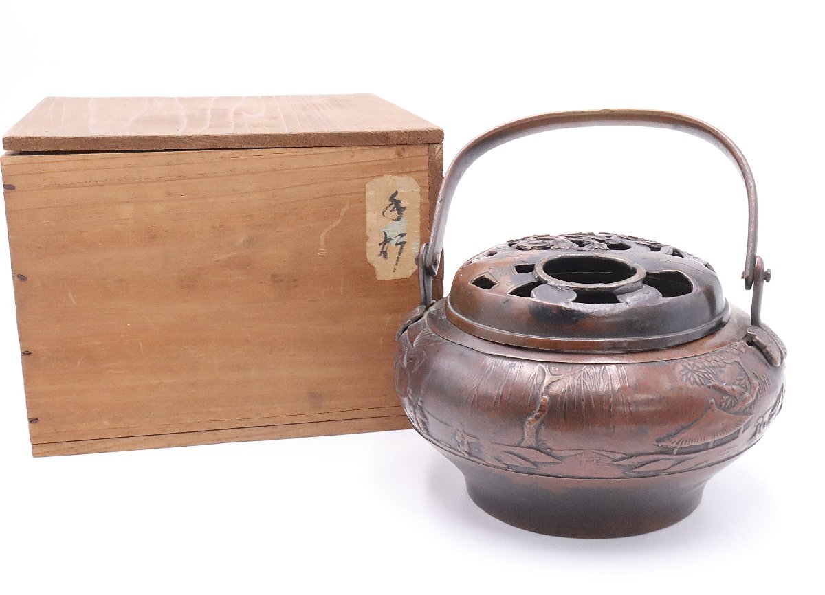 手炉は手を温めるための道具で、中国の古い時代から使われてきた伝統的な品です。大明宣徳年の銘が入ったこちらの品は共箱に収められており、古美術品や骨董品を愛好する方々にとって興味深いお品物となっています。古玩としての風格を感じさせる逸品で、コレクターの方が大切に保管されていたことがうかがえます。
