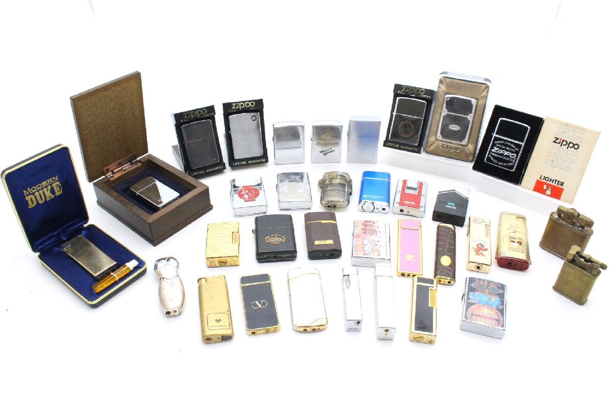 Zippo(ジッポー)をはじめ、ジバンシーやDUKE、marumanなど様々なブランドのライターが含まれており、オイルライターとガスライターの両方が揃ったコレクションでした。Zippoは特にコレクターの間でも人気が高く、デザインや年代によって価値の異なる喫煙具として知られています。