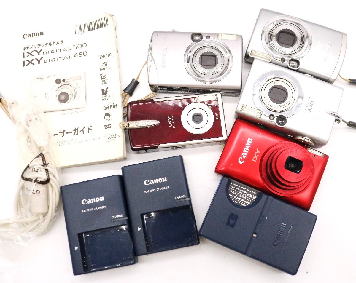 こちらはIXYシリーズの複数台セットで、PC1084、PC1209、PC1108といったモデルが含まれており、付属品も一緒にお譲りいただきました。CANONのIXYシリーズはコンパクトで使いやすく、多くの方に愛用されてきた人気のデジタルカメラシリーズです。
