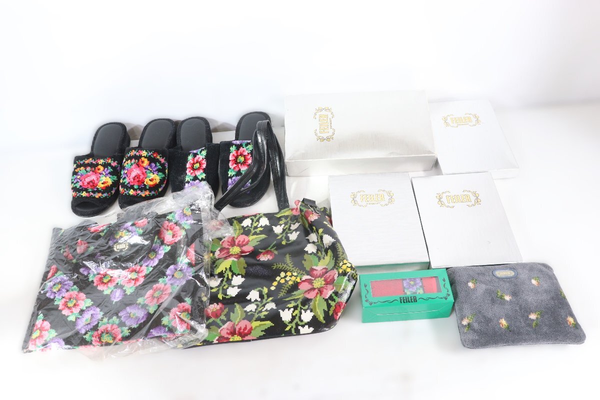FEILER フェイラーのスリッパ、バッグ、ポーチ、ハンカチなどをまとめて買取させていただきました。
