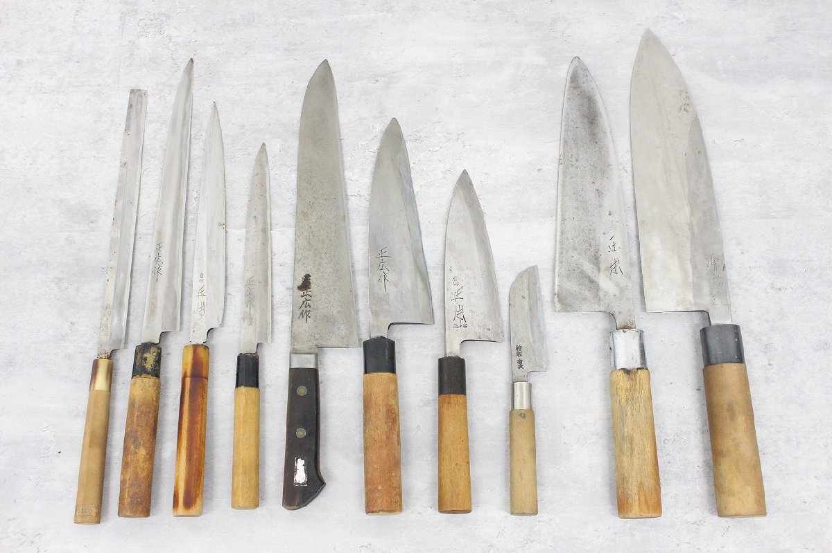この度、正広、正本、源房近、有次などの銘入り和包丁をまとめてお買取りさせていただきました。