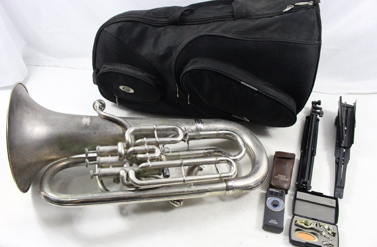 ユーフォニアムは吹奏楽やブラスバンドで重要な役割を果たす金管楽器で、Willsonは品質の高い楽器として知られています。今回お買取りした商品は試奏をしていないため正常な演奏ができるかは不明でしたが、ケース付きの状態でした。長期保管品のため使用に伴う傷や汚れ、凹みなどがありました。こうした管楽器は、メンテナンスを前提に需要があります。