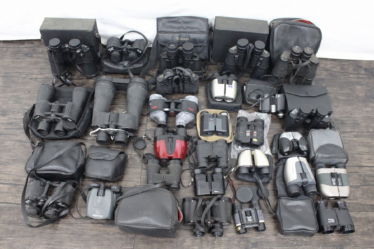 この度、双眼鏡とオペラグラスを大量にまとめてお買取りさせていただきました。Vixen、YASHICA、PENTAXなど複数メーカーの製品が含まれており、ケース付きのものもございました。