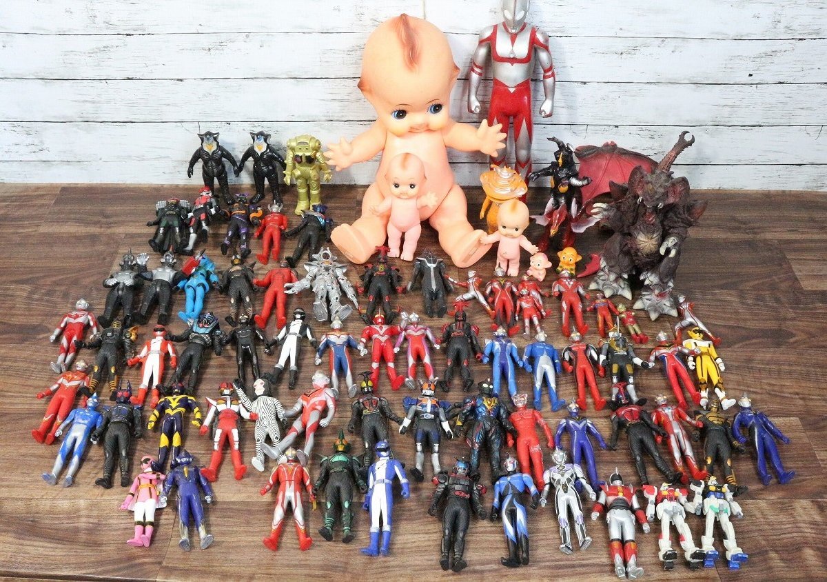 こちらはキューピー、ウルトラマン、仮面ライダーカブト、仮面ライダー電王、ボウケンジャー、デストロイアなどのヒーローキャラクターが含まれたセットです。ソフビは日本の特撮ヒーローやキャラクターを立体化した人気の玩具で、子どもの頃に遊んだ思い出の品として多くの方に愛されています。特撮ヒーローシリーズは長年にわたって親しまれており、コレクションアイテムとしても価値があります。