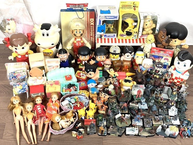 ぺこちゃん、リカちゃん、ウルトラマン、ピカチュウ、鉄腕アトムなど、幅広い年代に親しまれているキャラクターのフィギュアやおもちゃが含まれています。昔懐かしいキャラクターから人気キャラクターまで、コレクションとしても楽しめる品揃えとなった商品です。